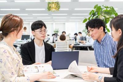 新オフィスはフリーアドレス制。新しい働き方に対応し、本人の希望によりいつでも在宅勤務が可能になっています。
