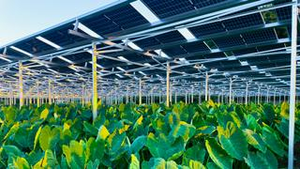 実際の営農型太陽光発電所の様子。気候変動に悩まされる農業。しかしパネルの下だからこそ、立派に作物が育ちます。