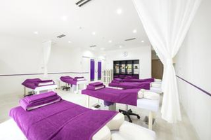 店内は白とパープルを基調とした清潔感のある落ち着いた空間です。
