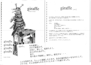 11年前に書かれた、giraffeの企画書。自由と、反骨の気概をもち、キリンのごとく遠くを見つめよう。 何かが変わるかもしれない。 一人一人がそうすることで、変化が起こるかもしれない。そんな想いが詰まっています。