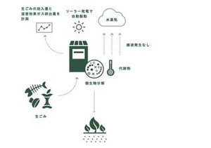 沖縄県・竹富町の集落に設置しているスマートコンポスト。ごみの収集・処理コストがかかる離島ならではのインフラを提供している