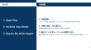 ▍日本のポップカルチャーを深く理解する海外メンバー。 グリッジは30名程度のメンバーのうち半分以上が海外在住であり、海外メンバーは日本のアニメや音楽などのポップカルチャーにリスペクトがあり日本語話者で構成しています。 現地の文化理解だけでなく、日本のポップカルチャーへの深い理解を持つ海外メンバーがいることがグリッジの強みです。 こうした海外メンバーのおかげで、表面的な言葉の翻訳ではなく「カルチャーの翻訳」を行うことができ、海外ファンダムのインサイトを精緻に把握することが可能です。 ▍グローバルマーケティングに関する理解を深める勉強会「Gridge Global Learning」。 日本のマーケティングに加えてグローバルで戦える組織にしていくために、各国で活躍するメンバーのノウハウを社内に展開する制度も設けています。 それが毎週実施している「Gridge Global Learning(GGL)」という勉強会です。 各メンバーによるプレゼンや各国のインサイト共有、質疑応答を行うことにより、最新の海外のケーススタディやノウハウを全員が学ぶことができるようにしています。もちろん日本語でのやりとりになります。 そのため、現時点でグローバルマーケティングの経験や知見があまりなくとも、こうした学習機会や実務を通してグローバルで活躍できるマーケターとして成長していくことも可能です。 ▍グリッジの根幹となる3つのバリュー。 グリッジは多国籍なメンバーが集まり多様な価値観が共存する組織ですが、国境や文化を超えて一丸となって働くために大切にしているのが、次の3つのバリューです。 ■Facts First. ー 事実把握。 クライアント情報、会議の履歴、データなどあらゆる意思決定の出発点は「事実」。 ■Go Bold, Stay Ready. ー 大胆に挑め、常に備えよ。 徹底準備が挑戦を可能にする。準備のなさが時間と機会を奪う。 ■One for All, All for Impact. ー 個はチームを支え、チームは成果のため。 国境も役職も超えて支え合い、一人ひとりがインパクトを生む責任を持ち全員で成果にコミット。 この3つのバリューは、ポジションや役職を問わず、すべてのメンバーが仕事をする上で大切にしている行動指針です。