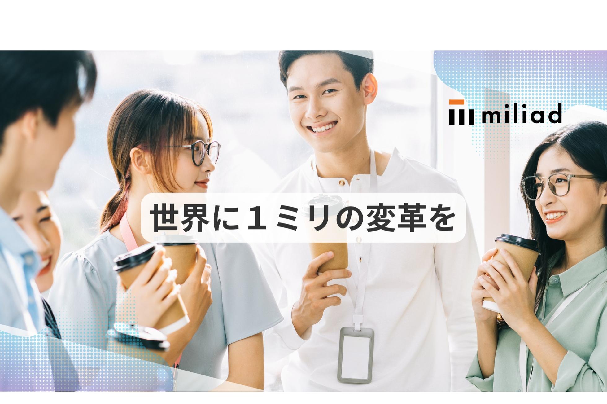 『世界に1ミリの変革を』 株式会社ミリアドのビジョンは、誰でも簡単に使えるシンプルなITサービスを提供し、世の中の「当たり前」を創造することです。