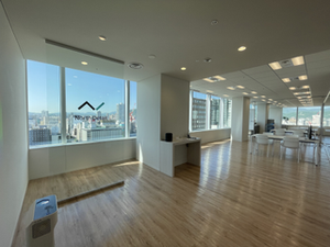 エントランスからと打ち合わせスペース。大きな窓から札幌の街並みが見えます。