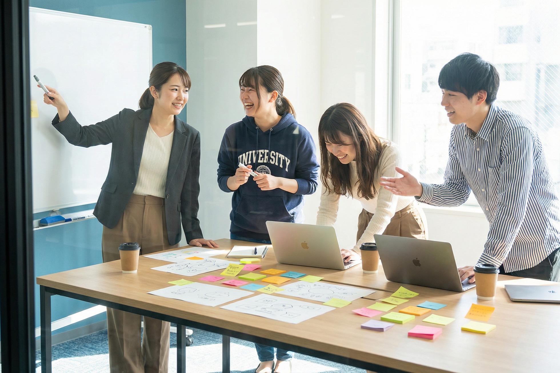 ▍東大発の知見と、フラットで意思決定の速いベンチャー文化 当社のメンバーは現在約10名。代表の杉本、共同創業者の共同創業者兼取締役の中郡を筆頭に、AIとビジネスの知見を持つスペシャリストが集結しています。少数精鋭の組織であるため、部門間の壁は一切なく、フラットなコミュニケーションが基本です。 クライアントへの提案内容や新規事業のアイデアも、役職に関係なく自由に発言でき、意思決定のスピードは極めて速いのが特徴です。この機動性の高さが、急速に変化する生成AI市場において、常に最先端のソリューションを提供できる原動力となっています。 ▍AIを日々触り、学び続ける「AIネイティブな環境」 私たちの事業ドメインの特性上、メンバー全員がAIの最新情報にアンテナを張り、日々触れて実践することが求められます。 インタビューでも「最新情報をキャッチアップし、AIを日々触っていく業務になる」「AIネイティブになりたい人にとって、すごくいい環境」という話がありました。会社として、最新のAI技術やツールを業務に取り入れるための環境整備に投資しており、自らが最先端のAIネイティブとなるための最高の学習環境を提供しています。 ▍柔軟性を重視したハイブリッドな働き方 働き方については、柔軟性を重視しています。事前調査(インターン募集)でも「ほぼリモート/フレックスOK」という情報があり、取材でも正社員においても柔軟に対応したいという意向が確認されています。 現在は、職種や業務内容に応じてリモートワークと出社を組み合わせたハイブリッドな働き方を採用しています。コアタイムのないフルフレックス制度も導入しており、個人のライフスタイルや業務の状況に応じて、最もパフォーマンスを発揮しやすい働き方を推奨しています。 自律的に業務を進め、成果で評価される文化です。