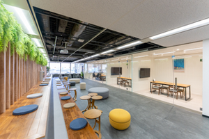 2024年8月にオフィスを移転。パーテーションはガラス張りにし、開放的な空間に。