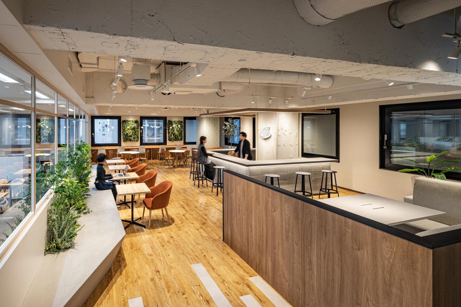グリーン溢れるオフィスには心地よいBGMが流れています。コミュニケーションのとりやすい環境でチームワーク力を育むことを大切にしています。