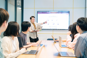 「4倍速」の実行力と超速人材育成 デカコーンという前例のない目標達成には、圧倒的な実行力(スピード)が不可欠です。私たちは行動指針(MPQ)の一つとして、世の中の「4倍速」で動き、課題に先回りすることを掲げています。 これは、誰も正解を知らない「0→1」のフェーズにおいて、「まず動いてみる」「やってみる」姿勢を重視する文化を醸成しています。 また、この挑戦を牽引する人材の育成を経営の最重要ミッションと定め、新卒を経営幹部候補として育成します。新卒社員は、研修後、OJTとして社長室(経営企画)やAI研究室(エンジニア)に配属され、新卒1年目から社長直下で経営会議やM&A候補企業のリサーチ・アプローチサポートなど、組織の中核を担う業務を経験します。入社後5年で事業責任者、3~5年目以降に経営幹部候補(CXO)として活躍することを目指す、極めて速いキャリアパスが設計されています。
