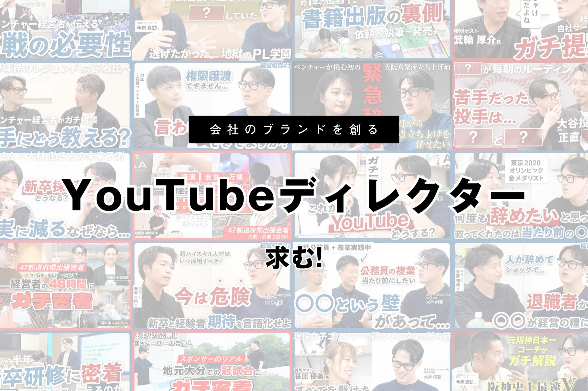 ▍Another worksの社長室  ̄ ̄ ̄ ̄ ̄ ̄ ̄ ̄ ̄ ̄ ̄ ̄ 株式会社Another works 社長室は広報・ブランディングを担う代表直下のチームです。広報・ブランディング・YouTube・秘書業務など多岐にわたって活躍できるポジションがあります。Another worksのVision「挑戦するすべての人の機会を最大化する」を本気で実現するために、できることを考え、たくさんの失敗をしながら、実現へと着実に進みます。 ▍求める人物像  ̄ ̄ ̄ ̄ ̄ ̄ ̄ ̄ ̄ ̄ ̄ ̄ ・ビジネスパーソンとして成長したい強い想い ・Another worksのMVVへの共感 ・YouTubeを通じたブランディングに興味がある方 挑戦したい方のご応募をお待ちしております! ▍具体的な募集ポジション:YouTubeディレクター  ̄ ̄ ̄ ̄ ̄ ̄ ̄ ̄ ̄ ̄ ̄ ̄ 業務内容 ・2.8万名越えのYouTubeチャンネルディレクション(Another works公式YouTubeです) ・新チャンネルの立ち上げ〜ディレクション(2つ目の公式YouTubeを立ち上げ予定です) ・YouTubeプロモーションの販売〜提供 ・全社ブランディングに関わる企画〜設計 具体的な業務例 ・全社ブランドに寄与するYouTube企画 ・ゲストへのオファー・関係構築 ・YouTube撮影・編集・ディレクション ・YouTubeの効果測定・分析 ・YouTubeプロモーションの販売 使用ツール ・Adobe Premiere Pro ・Figma 等 本求人をご覧頂きワクワクしていただいた方とまずはお話がしたいです! 少しでもご興味お持ちいただけましたら、ご応募お待ちしております!