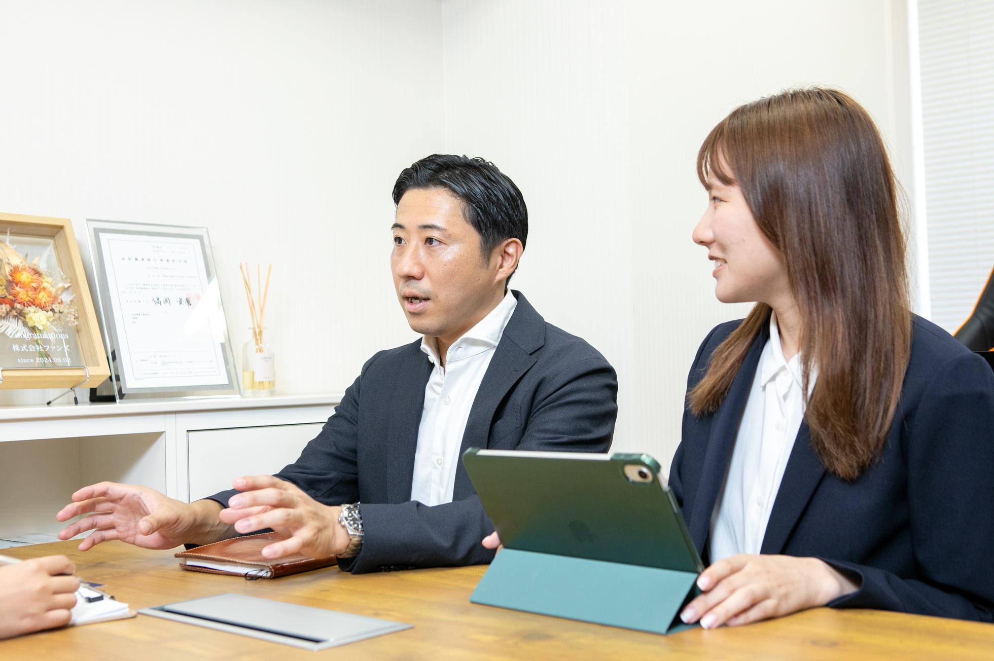 代表の藤本。企業と人、どちらにも誠実であることを大切に、ファンズを立ち上げました。