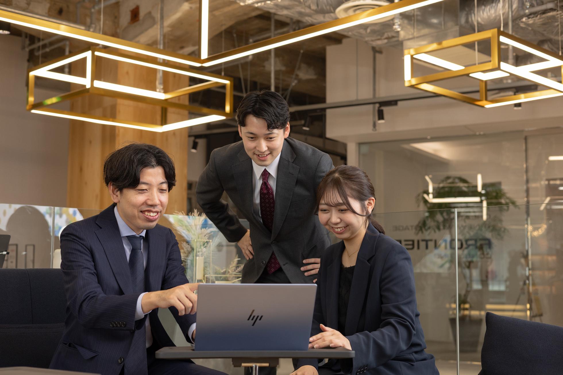 ▍大切にしている価値観とカルチャー  ◼︎安定性×ベンチャーのハイブリッドなカルチャー 20〜30代が中心となり、活気のあるベンチャー気質である一方で、確かな事業基盤を持つ安定性も兼ね備えています。社長室はなくフリーアドレス制で役員との距離も非常に近く、風通しの良さは抜群。面接も「見定める」場ではなく、お互いを理解する対話のスタンスを大切にしており、入社後も安心して働ける人間関係があります。 ◼︎個人ではなくチームで向き合う営業スタイル 個人の目標数字はありますが、予算はチームで追いかけるスタイルが基本です。メンバーをリスペクトし、思いやりながら、褒めるだけでなく時にはちゃんと指導する勇気を持ってチームワークを高めていく。法人営業やBtoBに挑戦したい方、お客様とじっくり向き合いたい方が安心して成長できる土壌があります。 ▍働く環境とキャリアの可能性 ◼︎「お客様への誠実さ」と「デザインの自由度」 当社は物件の紹介からコンセプト設計、施工、アフターフォローまでをワンストップで提供します。メーカーの製品に縛られることなく、常にお客様にとって何がベストかを追求できるため、本質的な価値提供をしたい方にとって、これ以上ない環境です。 ◼︎日本全国、そしてアジアへ 東京、大阪、名古屋、福岡の国内拠点に加え、ベトナム・ハノイ、中国・上海にも拠点を構えています。日系企業の海外進出をオフィスづくりの面から支えるなど、将来的にはグローバルな案件に携わるチャンスもあります。 ◼︎“ハイブリットワーク”で自律的に成長し続ける 働く場所や働く時間を自由に選べることで、社員みんなが各々の生活スタイルに合わせた働き方を推奨しています。また、業界未経験からでも、住宅・ブライダル・人材など多様なバックグラウンドを持つ先輩たちが第一線で活躍しており、誰もがプロフェッショナルを目指せる環境です。