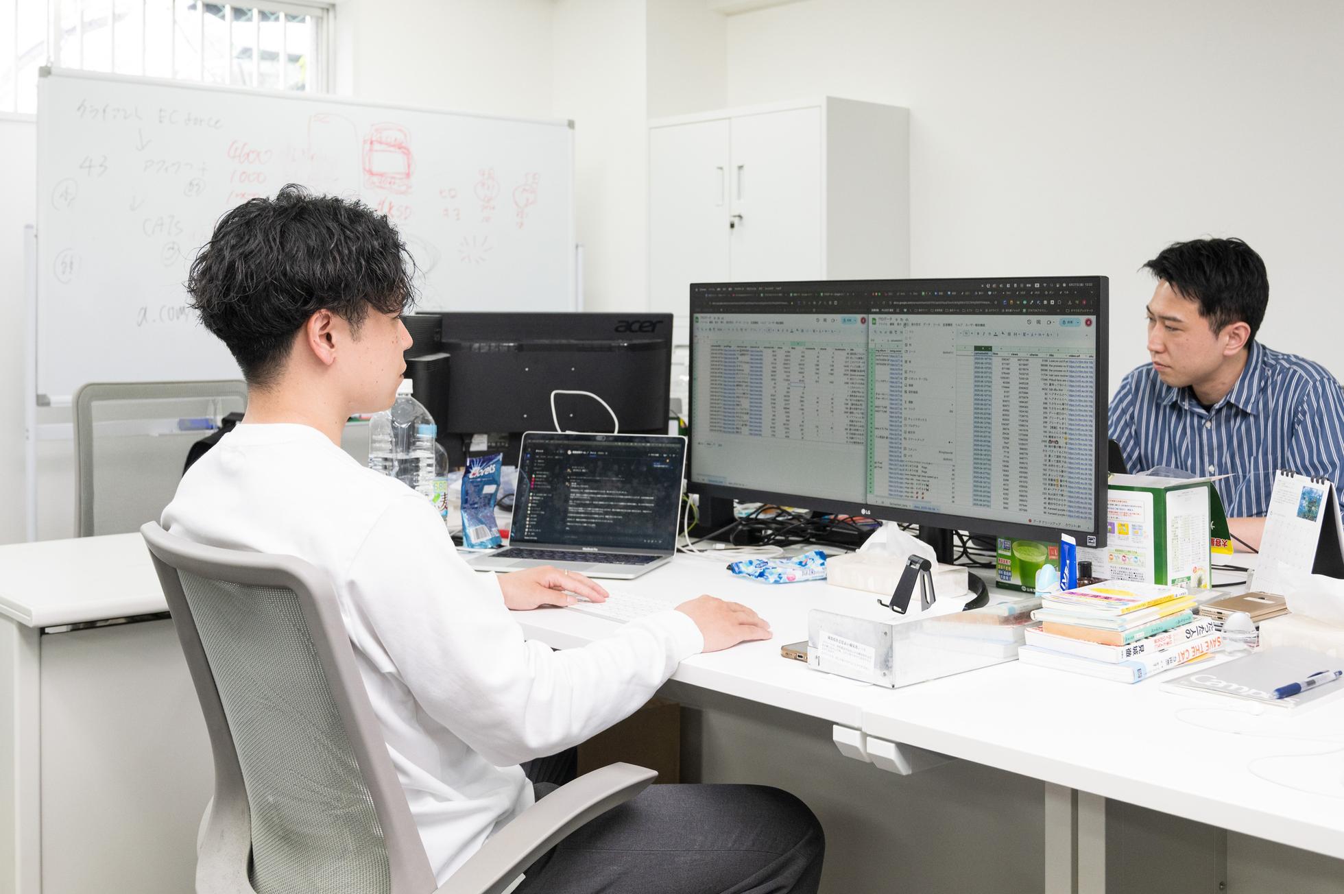 ▼企業文化 弊社に熱狂なきものはいません。 誰かの頑張りを冷笑したり、質問されて嫌な顔をするような人間も、もちろんいません。 爽やかで良いヤツしかいません。 前職が制作会社でADをしていた社員がいます。 彼は、パワハラが横行する前職で力を発揮できず燻っていましたが、転職後は質問されることが嬉しくてたまらない、そんな仲間だらけの職場で頭角を現しました。 日曜日の事務所でひとり「俺の作るCRは何も面白くない!」と頭を掻きむしりながらクリエイティブと格闘していました。 熱狂ってこういうことです。 飲み会の帰りに「なんか毎日ワクワクするなぁ」って呟いていたのを聞いたとき、「あぁ、この会社作って良かったな」としみじみ思いました。 みんなで良い仕事をして良い結果が出ると、自然とハイタッチが生まれます。 社会人になってから、ハイタッチ何回しましたか? 僕たちと一緒にハイタッチが生まれる仕事しませんか? ▼成長のスピード感が速い環境 弊社には未経験からでもマーケティングのプロになれる環境が整っています。 それは、社長自らが社員に対して、常にフィードバック・評価・抜擢を行う体制をとっているからです。 例えば弊社では、週に一回、クリエイティブ反省会を設けております。 そこでは、 ・過去に自らが作成したクリエイティブの反省 ・今後のクリエイティブ制作の方向性の計画 など、自分だけではなく、社長を含め社内のメンバー全員でFBを行います。 インプットとしての学びの機会と、アウトプットとしての思考/制作の機会が豊富に備わっているため、あなたに熱狂さえあれば、絶対にモノになります。全員総出で、してみせます!
