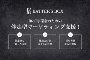 ▍経営理念  ̄ ̄ ̄ ̄ ̄ ̄ ̄ ̄ ̄ ̄ 「大人の青春って、最高。」 BATTER’S BOXに共通しているのは、「大人になっても青春したい」と本気で思っているメンバーが集まっていることです。 仕事に情熱を燃やし、仲間と直接会って語り合い、クライアントの事業成長に本気で向き合う。 そして結果を出して、うまい飯とうまい酒を一緒に交わす。 ゆるく働くのではなく、甲子園を目指すように、勝ちを追い、仲間と青春する感覚で仕事に取り組んでいます。 経営理念を体現するべく、以下4つのバリューを大切にしています。 ▍バリュー(共通の価値観)  ̄ ̄ ̄ ̄ ̄ ̄ ̄ ̄ ̄ ̄ ・情熱から全てが始まる 情熱があるからドラマが生まれる。必死にやった先にしか見えない景色がある。それを共に見よう。 ・喜びを創れ 僕らの仕事の目的は「仕事をすること」そのものではない。仕事を通じて、顧客や仲間、そして自分自身に喜びを創り出すことがゴールだ。 ・極めろ 「この領域は任せろ」と胸を張れるように。誰にも負けないほど磨き、徹底的に追及し、プロフェッショナルとして誇れる力を持て。 ・ONE TEAMで勝つ みんなで同じ目標を追い、力を合わせて達成するからこそ、一人でやるよりも何十倍もの喜びがある。全員がチームの士気を上げる当事者であり、仲間と共に勝つことを楽しもう。 現在、BATTER’S BOXは10人ほど(業務委託含む)のチームで構成されています。 創業まもないからこそ、裁量を持って挑戦できる環境があります。 「成長した会社に入る」のではなく、「あなたの手で会社を育てる」経験を、私たちと一緒にしてみませんか? ▍🔻ちなみに、こんな方には合わないかもしれません  ̄ ̄ ̄ ̄ ̄ ̄ ̄ ̄ ̄ ̄ ・ゆるく働きたい方 ・ワークライフバランスを最優先したい方 ・「教えてくれる環境」を重視している方 ・飲み会や社員旅行が苦手な方 ・部活のように情熱を注ぐ働き方を“青臭い”と感じる方 逆に、「情熱を持って仲間と働きたい」「本気でマーケティングに向き合いたい」という方にとっては、これ以上に熱くなれる場所はないと自負しています。 ◼️代表インタビューはこちら↓↓↓ https://www.wantedly.com/companies/batters_box_0711/post_articles/987051?status=success