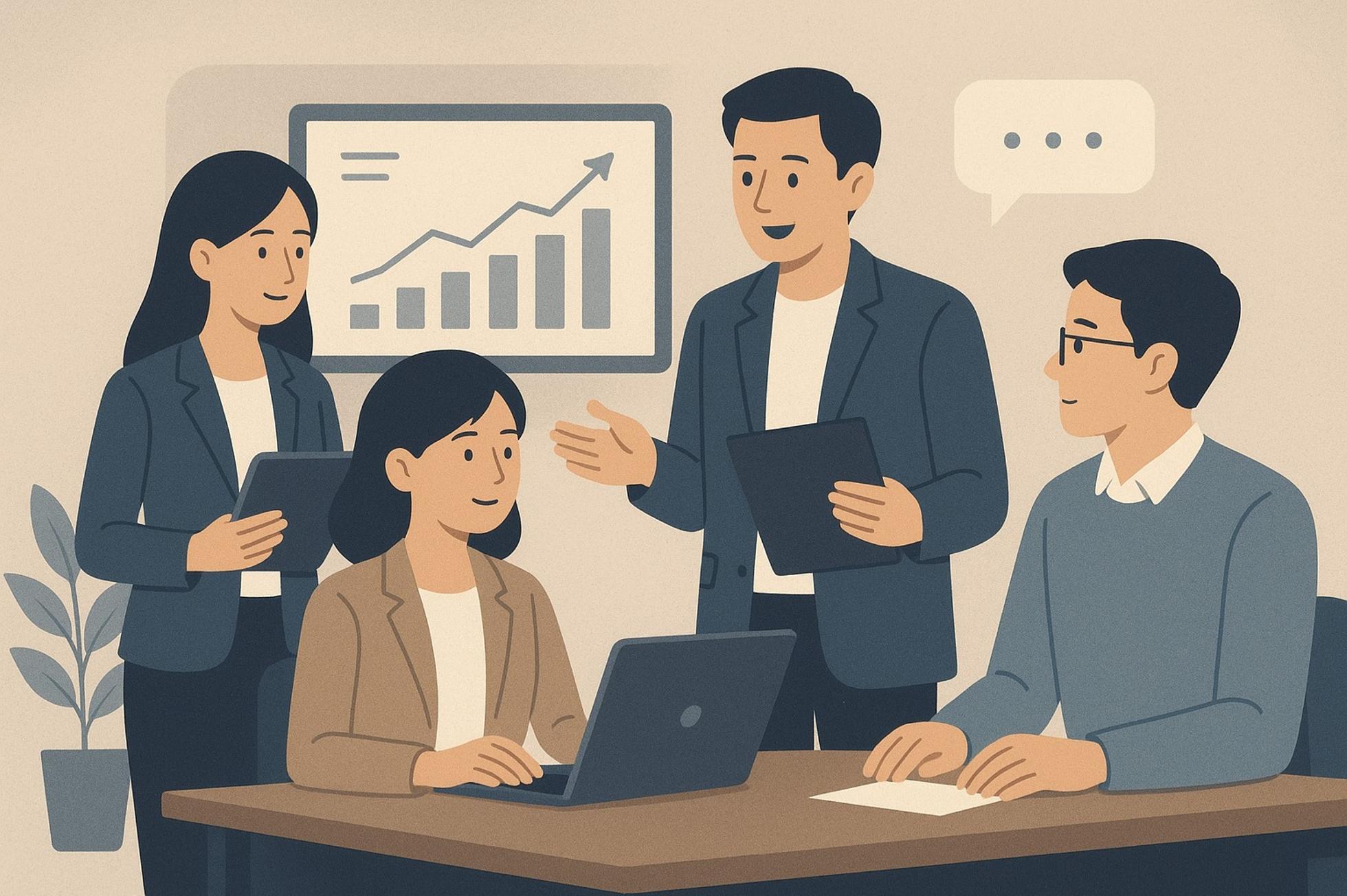 お客様と共同で企画や業務要件定義、設計・開発を行います。業務内容、導入の目的や目標を共有したうえで共同で推進しています。