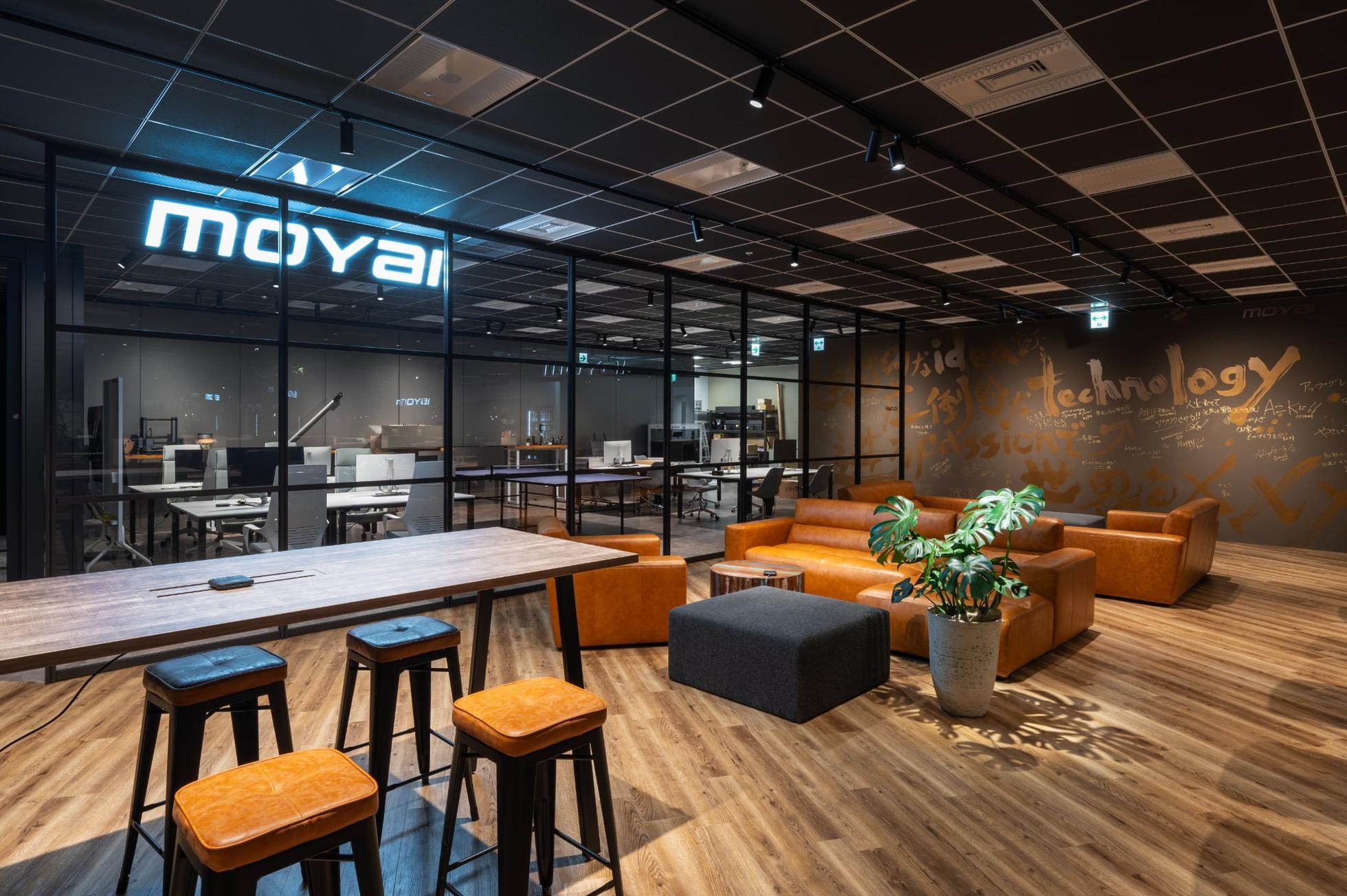 この壁は、MOYAI buzz wallと呼んでいて、MOYAIとしての決意を示しています。「世界をどうしたい?」を社員、株主、パートナーがそれぞれコミットしていく。そしてみんなの想いで埋め尽くされ、金色の壁になった時、新たな夢に向かって壁を塗り替える。未来に向けて惜しみなくしクラップアンドビルドを繰り返す会社の象徴です。