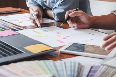学校をリノベーションした施設でオフィスワーク