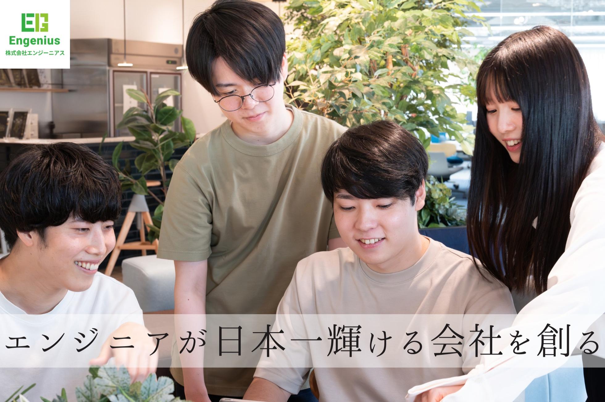 ================================== 【エンジニアが日本一輝ける会社を創る】 ================================== 私たち株式会社エンジーニアスは「エンジニアが日本一輝ける会社を創る」 というビジョンのもと、エンジニアのみんなが個々の想いを叶えることができる会社を実現します。 そのため、エンジニアにしかわからない苦労や悩みなどに本気で寄り添い、解決できる体制を当社では整えています。 「なにがしたい」「どう働きたい」など、一つ一つに目を向け、共に考え、これからのキャリアや人生をバックアップしていきます。 あなただけのキャリアを一緒に作っていきましょう! 2021年11月、株式会社エンジーニアスを創設 創業以来、グループ会社のサポートを受け、若い会社ながらも右肩上がりに成長を続けています。 ボトムアップな組織なので、常に社員の声を活かし“より良い会社づくり”に注力!更なる組織強化に向けて新たな仲間を募集します! ================================== 【エンジーニアスの事業内容を一部紹介】 ================================== ・システムの設計開発、受託開発 ・インフラの設計構築(サーバー・ネットワーク)、クラウド設計 ・プロジェクトマネジメント、ITコンサル ・テスト・運用保守、インフラ運用監視 など、多種多様なエンジニアが輝くことができるサービスを展開し、IT事業で様々なお客様のニーズにお応えしています。 ▼詳しい事業内容についてはこちら https://engenius.co.jp/service