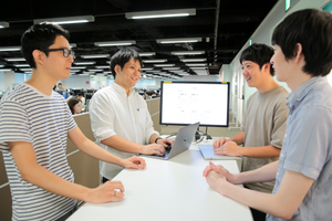 スタンディングの会議スペースもいくつか確保され、カジュアルな打ち合わせがされています。
