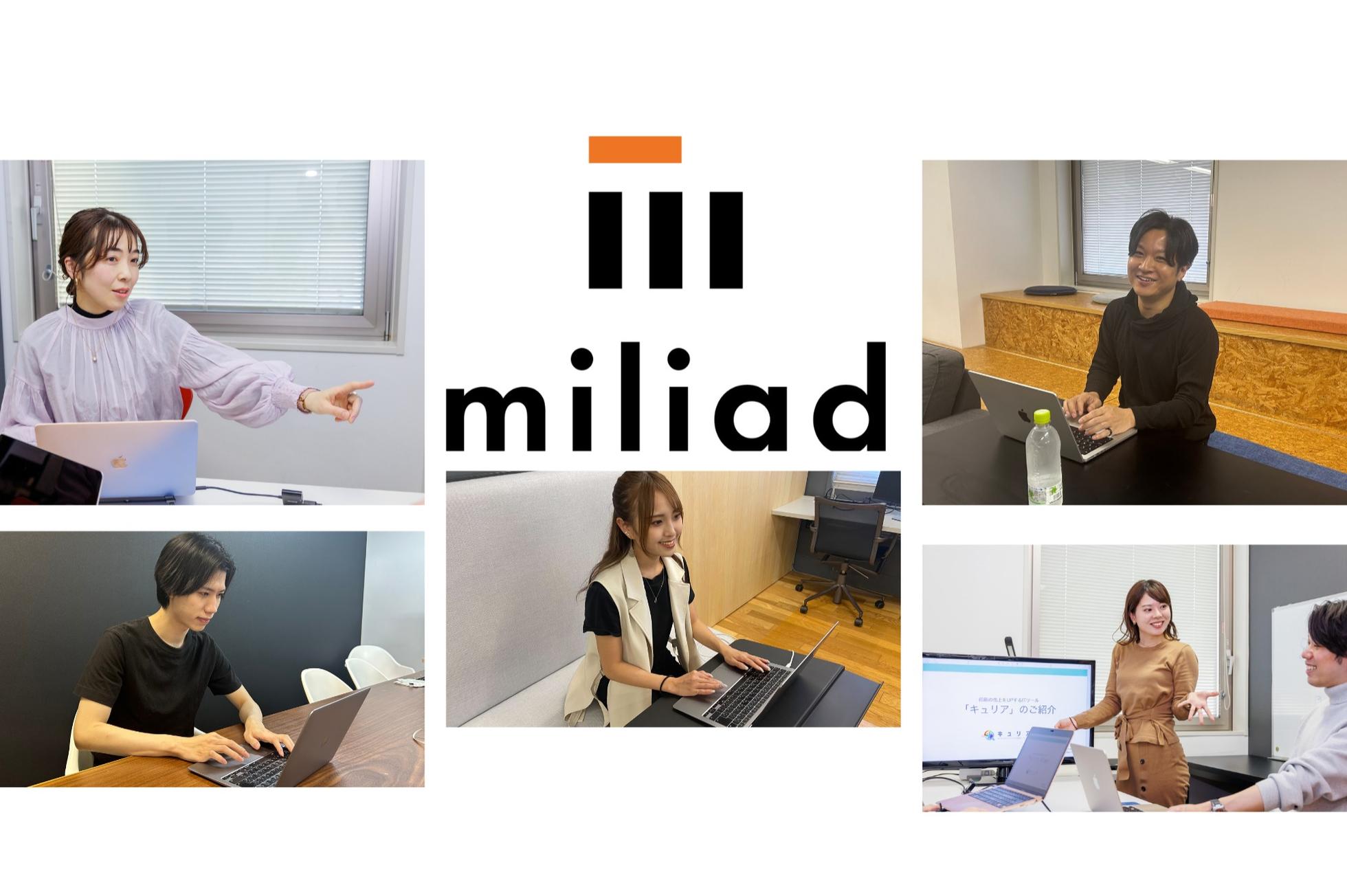 ■働くうえで大切にしていること AIによって、資料作成・文章作成・情報収集・分析―― これまで「頑張って時間をかけること」に価値があった仕事は、どんどん自動化されていきます。 でも、私たちは思っています。 仕事がラクになる時代だからこそ、「人がやる意味」はむしろ濃くなると。 顧客が本当に求めているのは、ツールの説明でも、正論でもありません。 「やってみよう」と思える勇気や、「続けていけそう」と感じる安心感。 つまり、人の意思決定や感情を前に進める関わりです。 だからこそミリアドでは、 「言われたことを、ただこなす」よりも 自分で考え、動き、振り返ること を評価します。 うまくいかなかったとしても、「なぜそうなったのか」「次はどうするか」を一緒に整理します。 この振り返りの積み重ねが、挑戦ドリブンな成長を生み出しています。 ■ミリアドメンバーの特徴 共通しているのは、向上心と素直さです。 ・0→1の立ち上げが好きなメンバー ・1→10、1→100と仕組みにしていくのが得意なメンバー ・目立たないところを黙々と支えるメンバー タイプはさまざまですが、「自分の役割でちゃんと価値を出したい」という思いを持った人たちが集まっています。 中には、「やりたいです!」と手を挙げて、新しい部署をつくってしまったメンバーもいます。 自分から手を挙げれば、きちんとチャンスが回ってくる——そんな挑戦できる環境です。 ■働きやすい環境をつくる 挑戦のハードルを下げるために、働きやすさの整備も本気で取り組んでいます。 【福利厚生(一部紹介)】 ▶︎ ライフスタイル手当(身だしなみ等の自己投資をサポート) ▷ 家賃補助 ▶︎ 書籍購入補助 ▷決算会実施(全額会社負担) ▶︎ リファラル採用ボーナス ▷美味しいコーヒー&紅茶&ウォーターサーバー ▶︎独自の研修 社内の数字や方針もできる限りオープンにし、情報格差が生まれないようにしています。 情報がオープンだからこそ、自分で判断して動きやすい、挑戦できる環境が整っています。 ■フラットな距離感 国内外さまざまなバックグラウンドを持つ約27名のメンバーが活躍しています。 役職や社歴に関係なく、「いいものはいい」と言えるフラットさが特徴です。 トップダウンではなく、現場からの声やアイデアが歓迎されるので、 立場に関係なく意見を出して挑戦できる環境があります。 雑談チャンネルでは他愛もない話で盛り上がることも。 真面目な議論と、ラフなコミュニケーションのメリハリがある組織です。 ■実績重視の会社 年齢や社歴ではなく、挑戦と行動の積み重ねが評価されます。 ・営業職で入社1年でリーダーに抜擢 ・入社4ヶ月で昇進 といった事例もあり、「やりたい」と手を挙げた人にはチャンスが回ってきます。 「仕事にスピード違反はない」という考えのもと、自己成長に全力で向き合うメンバーを会社として全力で応援します。 ■起業を目指す社員もいます 将来起業したいメンバーも在籍しており、会社としてもその挑戦を応援しています。 ・経営塾やセミナーの参加 ・関連書籍の購入 などにかかる費用をサポートし、「いつか自分の事業を持ちたい」という想いも後押し。 会社を卒業した後も、その人の挑戦を応援し続けたい——そんなスタンスで、長期的に挑戦できる環境を提供しています。 ■当社で活躍している社員のストーリー記事もぜひ 実際にミリアドで成長しているメンバーのリアルな声は、ストーリー記事でご覧いただけます。 「変化することは楽しい」入社1年でトップセールスを達成、リーダーへ抜擢された成功の秘訣とは https://www.wantedly.com/companies/company_2069858/post_articles/884501