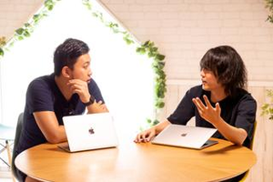 プロダクト戦略について議論する代表の安西(左)とリードエンジニアの栗野(右)