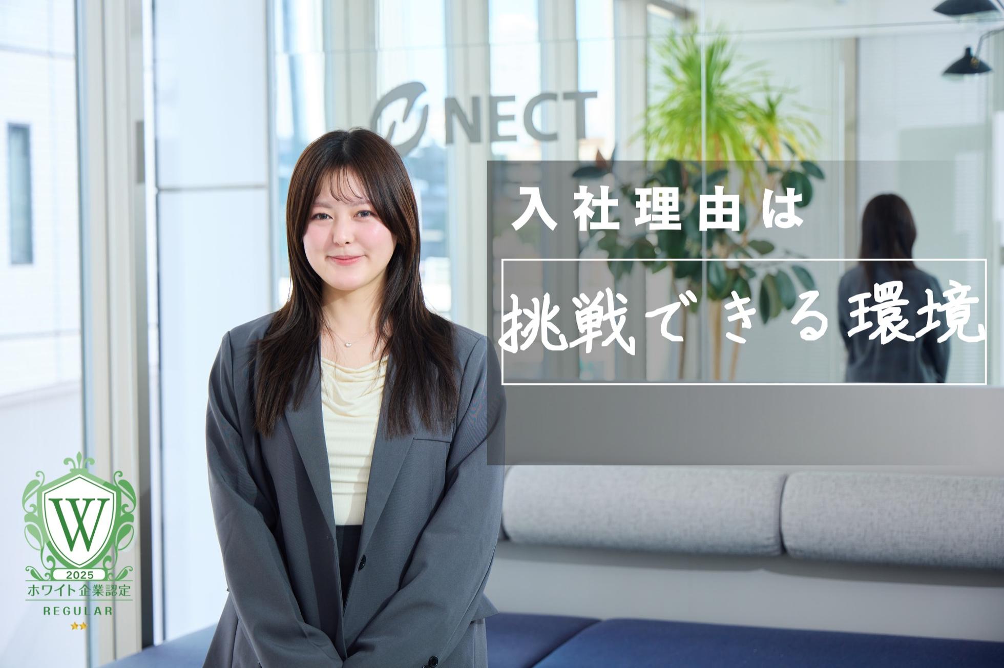 新卒でエステティシャンから社会人キャリアをスタートし、社員がより働きやすい環境作りに携わりたいと思い、 人事の道にシフトチェンジして転職活動するもなかなかうまくいかず、、、 まずは人材業界で経験を積もうと考え、人材派遣会社にて営業の道に進みました。 派遣コーディネーターとして企業や派遣スタッフのサポートに従事し、現在は株式会社NECTにて念願であった人事として中途採用を担当しております! 「本当はやってみたいけど自信がない」「自分にできるか分からない」 こういった思いを抱えている方こそ、ぜひ株式会社NECTの魅力を知っていただきたいです! 私たち人事部では、人を”選ぶ”のではなく”可能性を広げる”採用をモットーにしております。