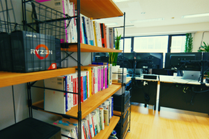 色々本や機材もありますし、読書スペースもあります
