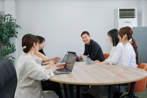 少数精鋭のチーム編成で、立場や役割かかわらずアウトプットが活発です。全員がリーダーシップを発揮している点が特長です。