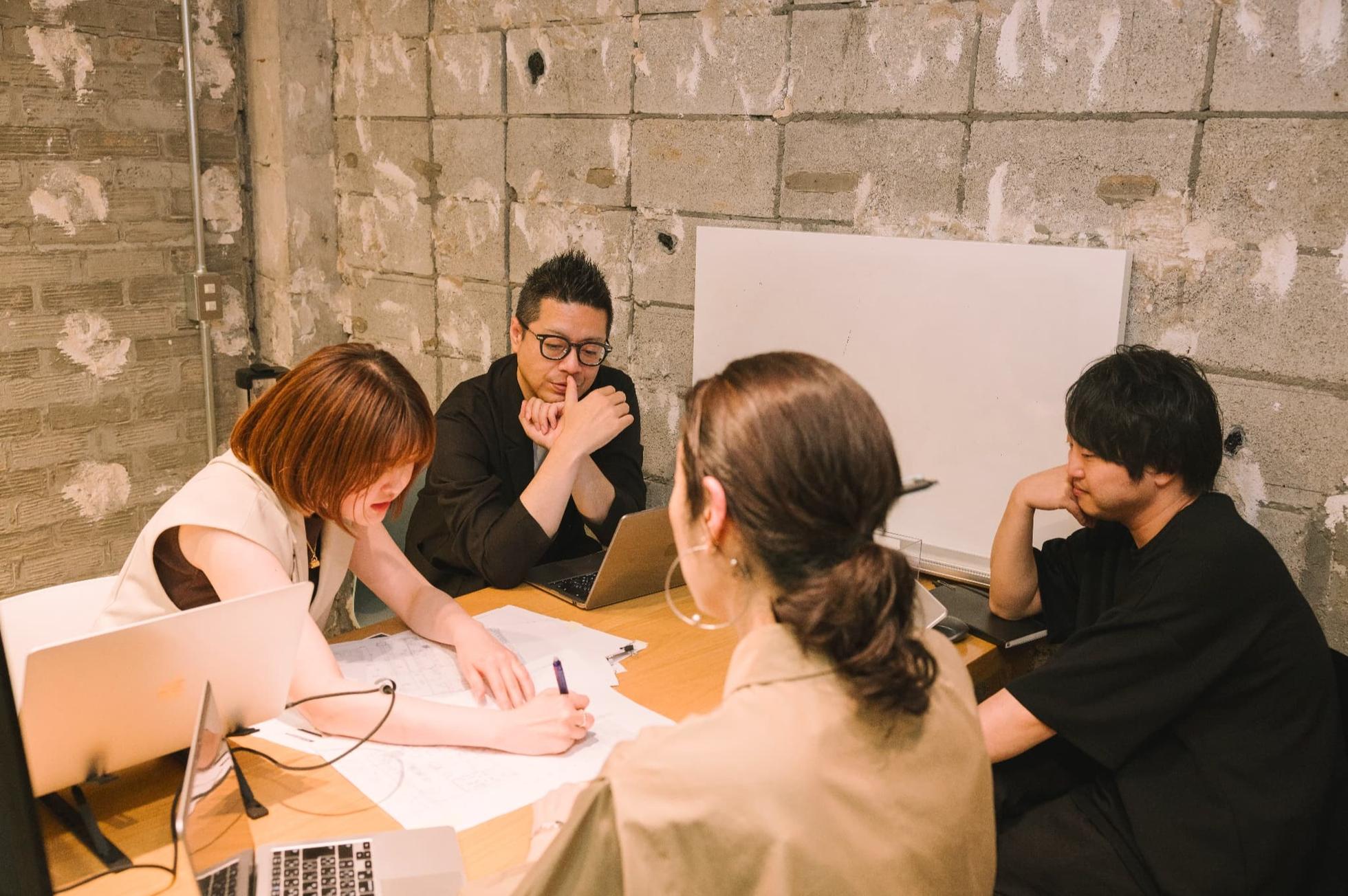 壁には、メンバーがDIYした本棚があり、建築やデザイン・組織・営業など幅広いテーマの本(時には漫画も)が置かれています。手に取り合いながら、お互いの興味について話すシーンもよく見られます。