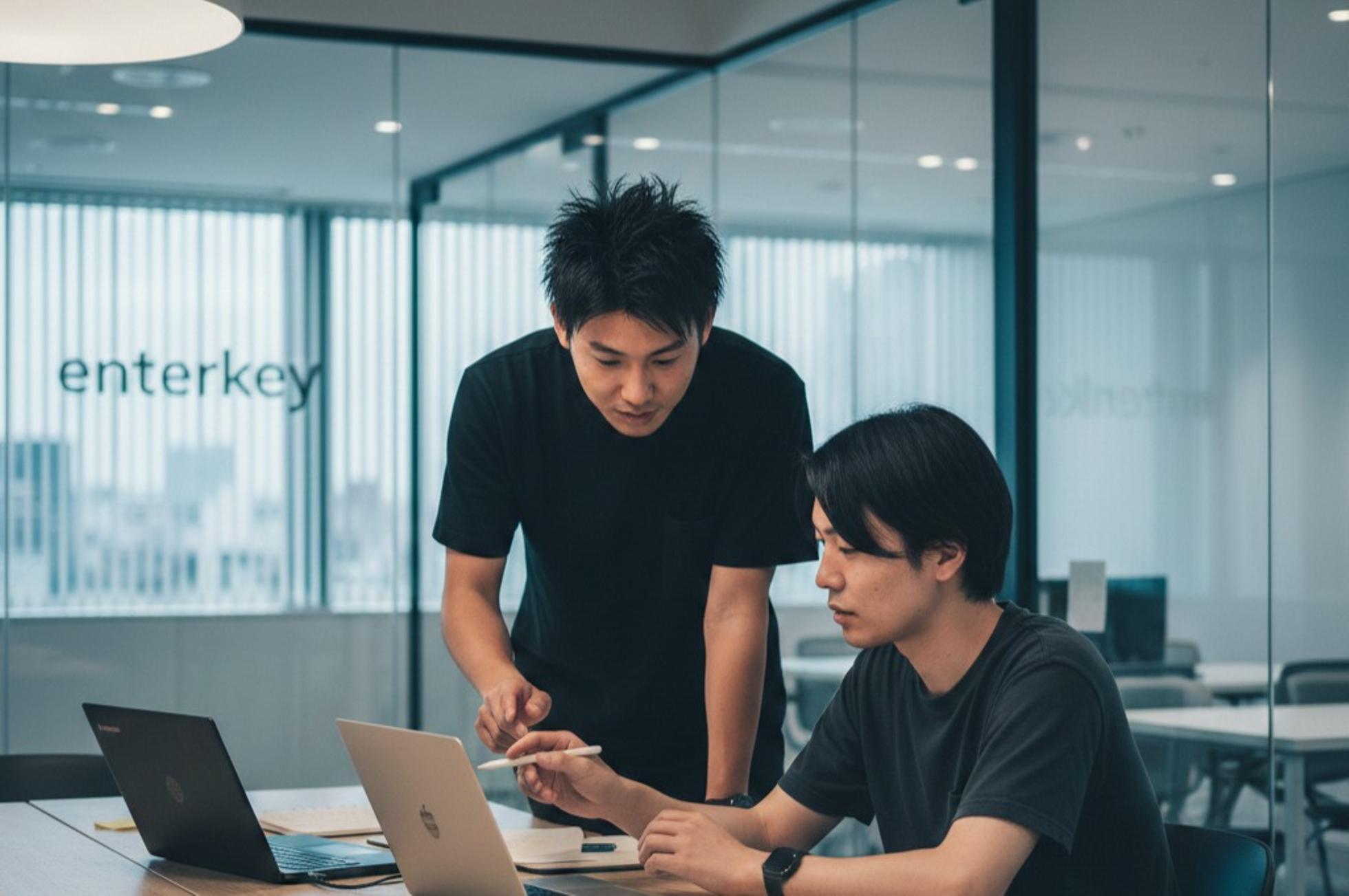 スポーツチームのように能力密度に徹底的にこだわることで、合理的な組織運営体をつくっています。 ・能力密度が高いプロフェッショナルチームは、相互に信頼し、自律的に動くため、モチベーション管理や業務進捗管理を行う中間管理職の人件費や間接人員コストが不要に ・結果、働くメンバーは不必要な調整やMtgを行う必要もなく、事業を伸ばすためにまっすぐに業務に向き合える環境をつくっています。 ▼働くメンバーに求めたい価値観 <圧倒的な成果への執念> エンターキーで働くメンバーは小さな経営者であり、PLに責任を持ち、チームを組成し、自ら文化をつくる。1円でも稼ぐ意識とスピードに徹底的にこだわります。 < 挑戦を続ける学習能力> 常に新しいスキルを学習し、挑戦そのものを楽しみ、進化し続ける。 この価値観が、更に能力密度の高い人材を惹きつけるサイクルをつくります 。 <10年後もともに過ごす仲間> コミットメントが高いことは大前提だが、他者を尊重できないTakerは採用しない 。Giverの精神で10年後もともに過ごす仲間として向き合います。