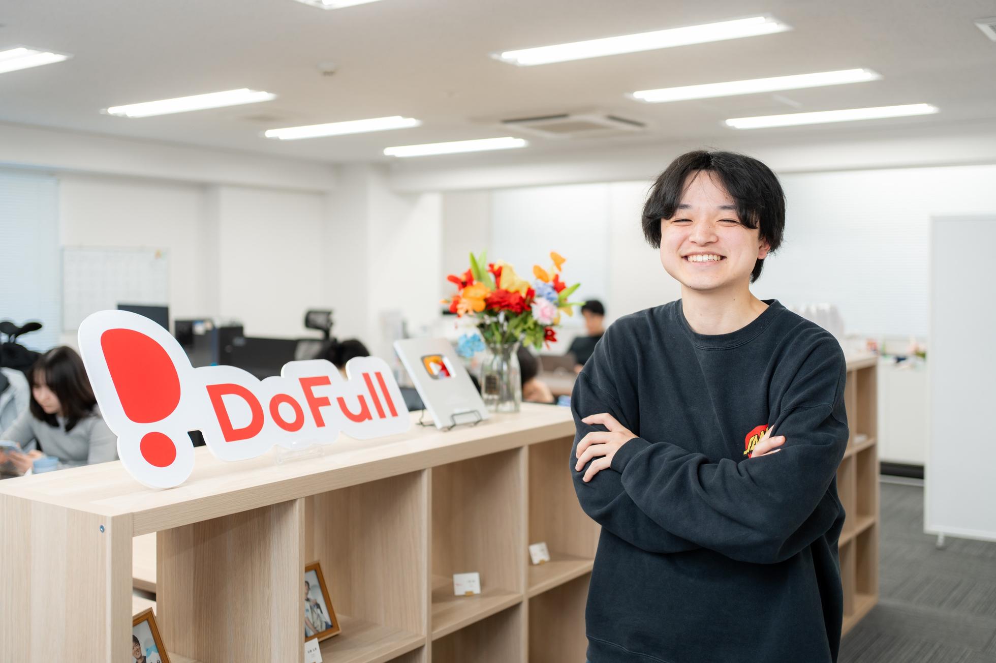 兵庫県のど田舎に生まれ、自由気ままに学生生活を送り、10種以上のバイト、長期インターン2社を経てDoFullに入社。 ヒト・事業内容と方向性に共感し、直感で決断。 クリエイティブ関係で実績なし。想いだけでこの世界に入らせてもらえた。 そんな自分でも最速で貢献するために、楽しむことにこだわり続けたいと思い、それが可能な社風と思えたからこそ、決断できました。 ・日々、検証と改善を繰り返し、成長する ・自分も他人も、その人の"らしさ"を出せるように、意見を聞く・言える環境を作っていく やれることは全部やって、仲間と一緒にどんどん楽しくしていこうとおもてます。