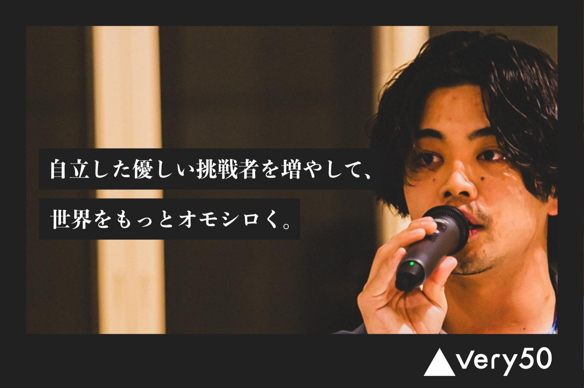 【自立した優しい挑戦者を増やして、世界をもっとオモシロく。】 いいことをしているのに経済的に苦しい、金は稼いでいるがいいことはしていない。そんな人が大半だからこそ、社会にいいことをして、経済的にも自立できる人を増やせば、もっと世界は面白くなるんじゃないか。こんな代表・菅谷の考えから始まったvery50は、「自立した優しい挑戦者」を増やすために様々な事業に取り組んでいます。 【MoG(Mission on the Ground)などのプロジェクト】 国内やアジア諸国で社会課題の解決に取り組む事業家と協働し、社会課題に向き合いながら、実践的なビジネススキルを学ぶプロジェクトを国内の高校生に提供しています。参加者は年間約3,000人。現在の主要な事業となっています。 ▼MoG 概要ページ(https://www.mog.or.jp/) 【.TENを中心とするコミュニティ活性化事業】 コミュニティースペース「.TEN」を自立した優しい挑戦者や、その理念に共感する人が集まれる拠点として運営しています。また、社会事業家への投資活動なども実施しています。 ▼.TEN 概要ページ(https://dot-ten.jp/