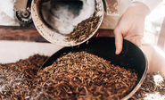 森乃園では、ほうじ茶焙煎に使っている緑茶葉や、レモングラスなどのノンカフェイン原料などを全国各地から厳選し、焙煎しています。産地や品種によって香りや味わい、焙煎方法も変わってくるので、茶葉選定の担当者がたくさんの種類の茶葉から、時には遠方の茶畑にも足を運びながら厳選しています。