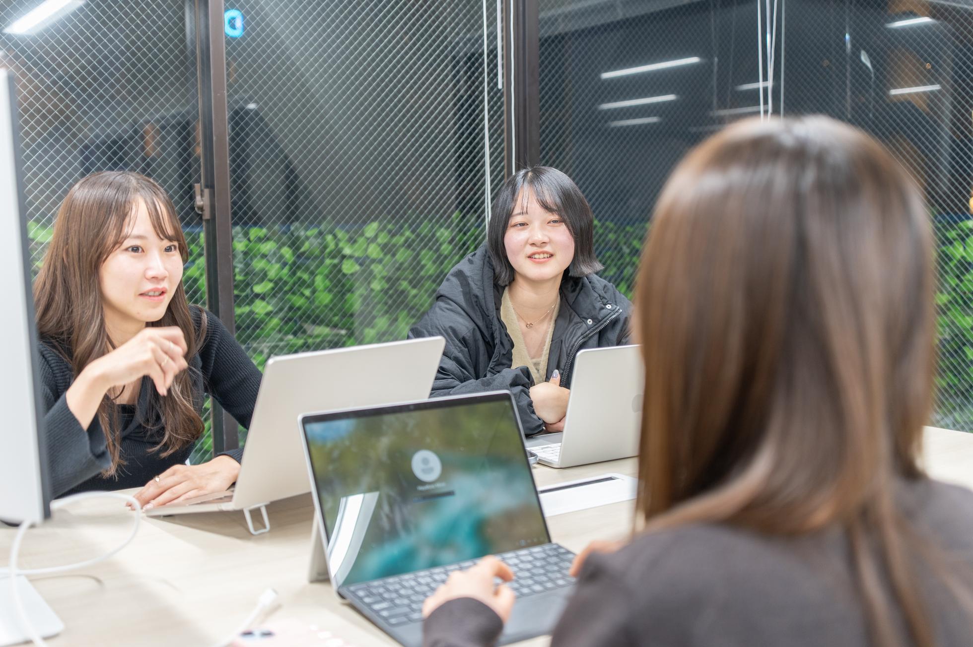 HIDANEでは大学1年生から4年生まで十数名のインターン生が大活躍中!動画の企画・撮影・編集、案件管理からエンゲージメントを高める緻密な分析まで、もはやインターンだけでも事業が成立するほど、社員顔負けの主体性でプロジェクトを動かしています。オフィスへの出社はもちろん、自宅でのオンライン作業や大学の空きコマを活用するなど、ライフスタイルに合わせた柔軟な働き方が可能です。社員との距離も近く、一緒に飲み会やサウナへ行くほど!元新卒採用人事の社員による就活相談や模擬面接など、キャリアも全力応援します!