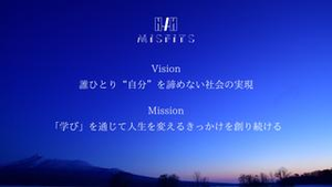 ━━━━━━━━━━━━━━━━━━━━ ▼Vision 誰ひとり”自分”を諦めない社会の実現 ━━━━━━━━━━━━━━━━━━━━ 誰ひとり“自分を諦めない”社会とは、どんな過去を持っている人でも常に新たな挑戦の選択肢があり、その新たな挑戦を社会全体があたたかく応援する。そんな価値観をもった社会だと私たちは考えています。 Misfitsはこのビジョンを達成するために活動しています。 ━━━━━━━━━━━━━━━━━━━━ ▼Mission 「学び」を通じて人生を変えるきっかけを創り続ける ━━━━━━━━━━━━━━━━━━━━ 社会に新しい価値観を生み出すために「大人の学び」に変化を起こしていきたいと考えています。 年齢や職業など関係なく誰もがやりたいことに挑戦できる機会を創り出しています。 実力と実績を兼ね備えた様々な分野の専門家とタッグを組んで、新しい学習コンテンツを生み出し、これまでにはなかった「大人の学び」をプロデュースしています。