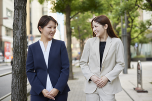 バックオフィス・エンジニア問わず、女性も多数活躍しています。写真はスーツですが、採用部はカジュアルな服装で勤務しています。