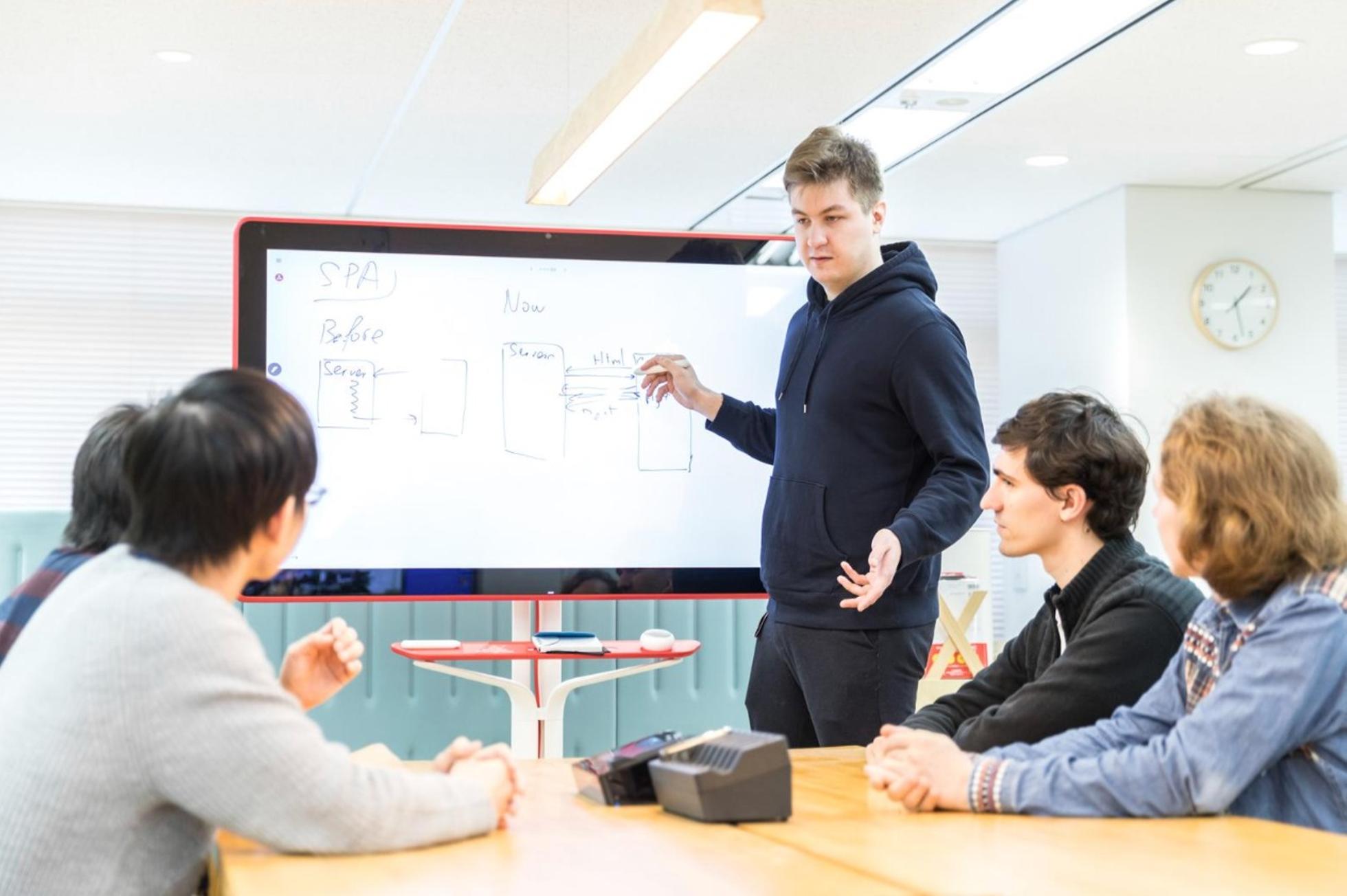 サービスの構築方法に関して議論するエンジニア達
