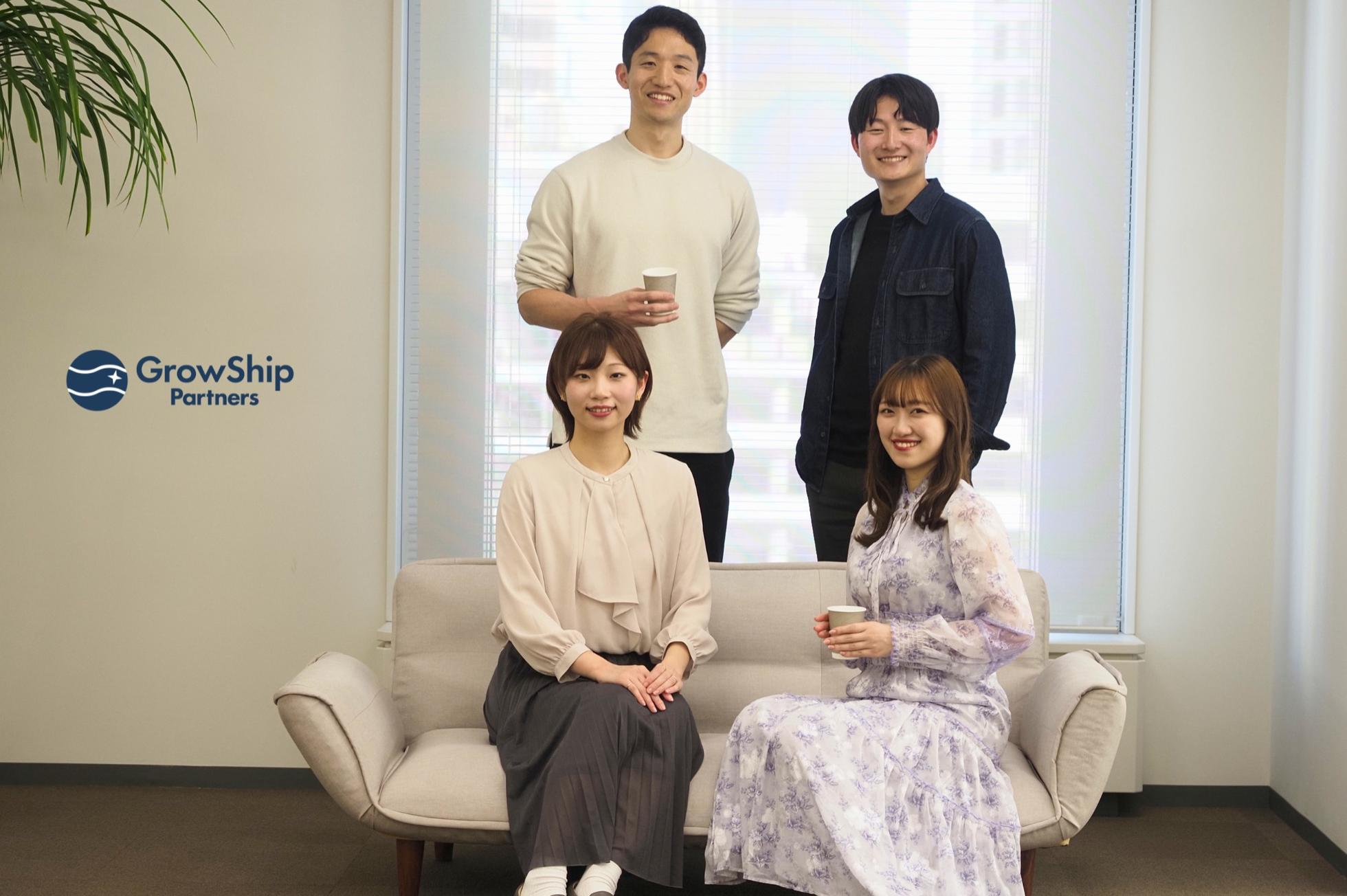 ■ メンバー構成 平均年齢は31歳。 若手メンバーも多く、前職は営業・人事・派遣サポートなどバックグラウンドはさまざま。 未経験スタートのメンバーが活躍しているのも当社の特徴です。 ■ 働く環境 ・裁量が大きく、企画〜実行まで任せてもらえる ・経営層と距離が近く、意思決定が速い ・落ち着いた働き方(残業月10hほど) ・私服勤務OK、フラットな社風 ・カフェスペースありの新オフィス ■ 文化・雰囲気 ✅タテ・ヨコ関係なく、みんなが自由に発信できる環境 ✅若手でもプロジェクトの中心に立てるチャンス多数 ✅月1のハッピーアワーや有志の部活など、つながりも自然に生まれる雰囲気 ✅マーケチームは特に女性がのびのびと活躍♪ ■グローシップ・パートナーズの今、そして、社内の状況は、こちらに随時アップしています! 【採用Instagram】 https://www.instagram.com/growship_recruit 【Facebook】 https://www.facebook.com/GrowshipPartners 【X(Twitter)】 https://twitter.com/growship_group