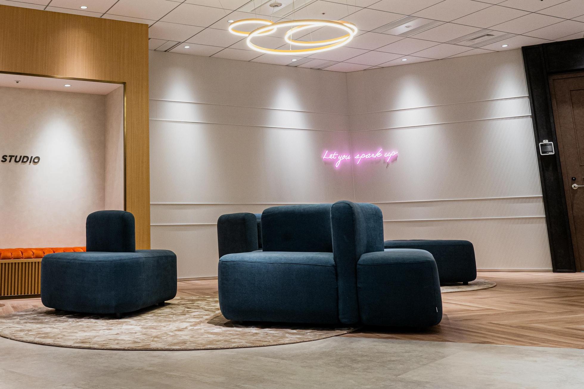 オフィスのコンセプトは、「TORIHADAを造りに集まりたくなる空間」。執務スペースの横にこういった食事や打ち合わせができる万能なフリースペースを広く設け、様々な業種のメンバーが入り混じり、シナジーを生んでいきやすい環境となっています。