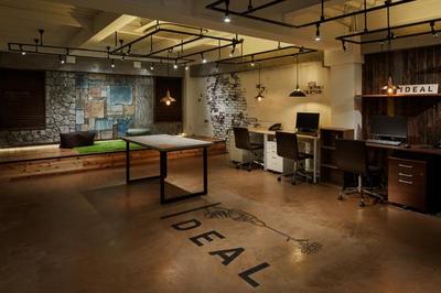 打ち合わせの質を高める、洗練されたオフィス空間。無機質なコンクリートと木の温もりが調和するデザインを提供します。