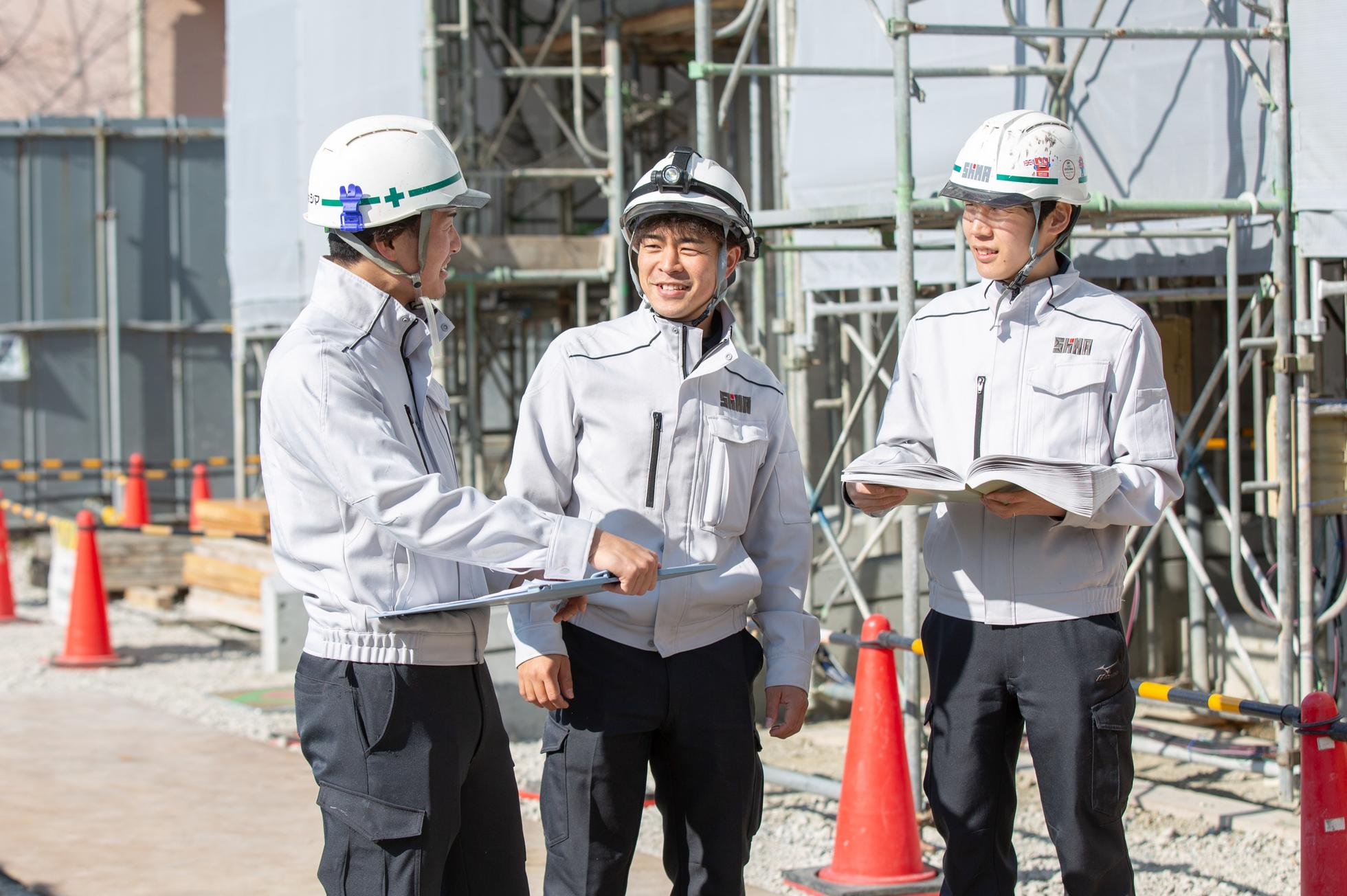 現場だけでなく、オフィスでも建設の仕事は続いています。施工計画の確認や工程管理、品質に関する検討など、一つの建造物を完成させるために丁寧な打ち合わせを重ねます。分からないことはその場で確認し、経験を共有しながら進めていくことで、技術と知識を次の世代へつないでいます。