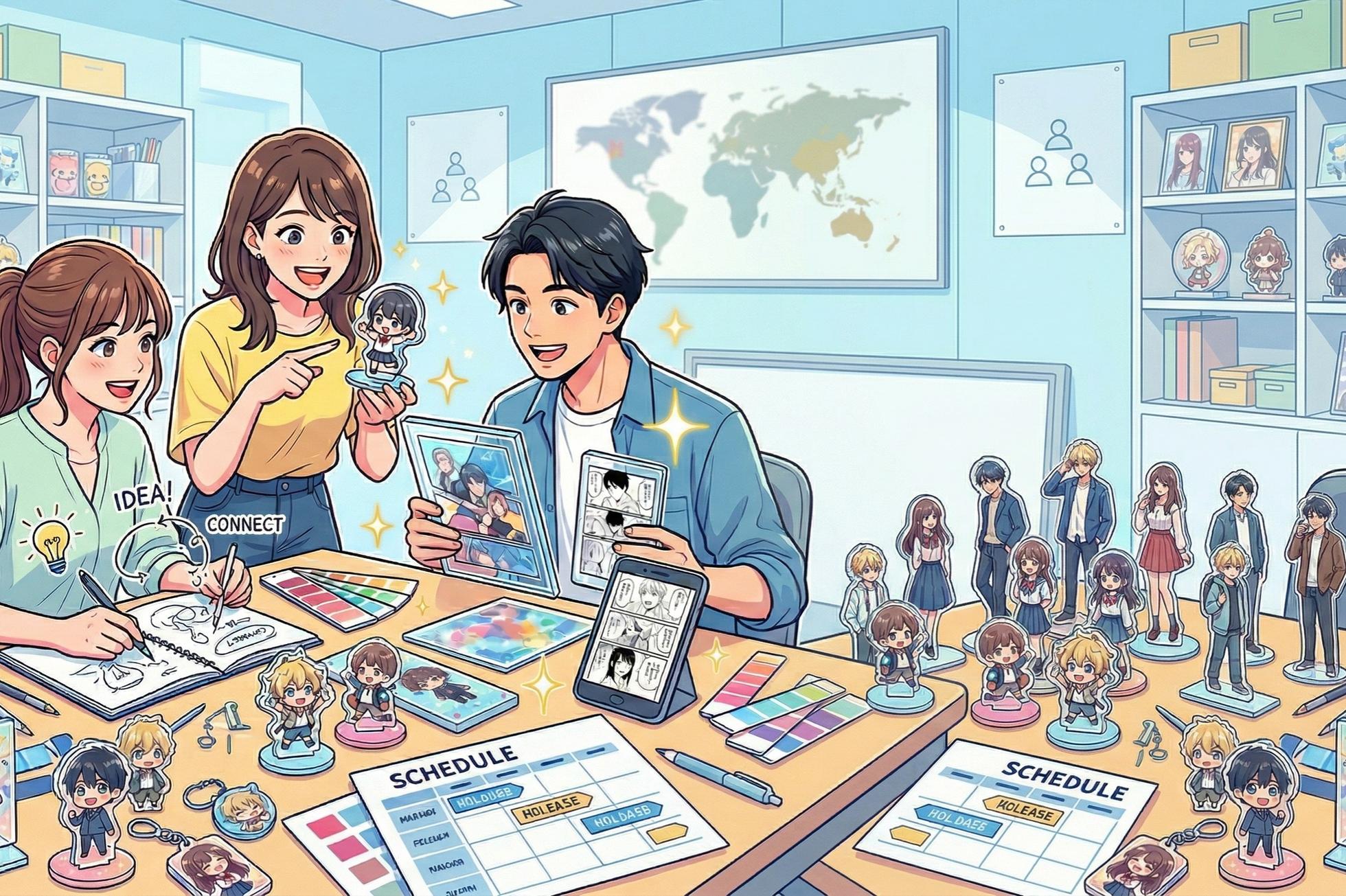 推し活で欠かせないアイテム!アクリルスタンドやアクリルキーホルダー等の商品企画・製造ディレクションが主力事業となっております。