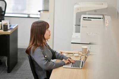 広さはコンパクトながら、全席フリーアドレスで自由に作業が可能。27インチモニターも完備し、効率的に働ける環境です。