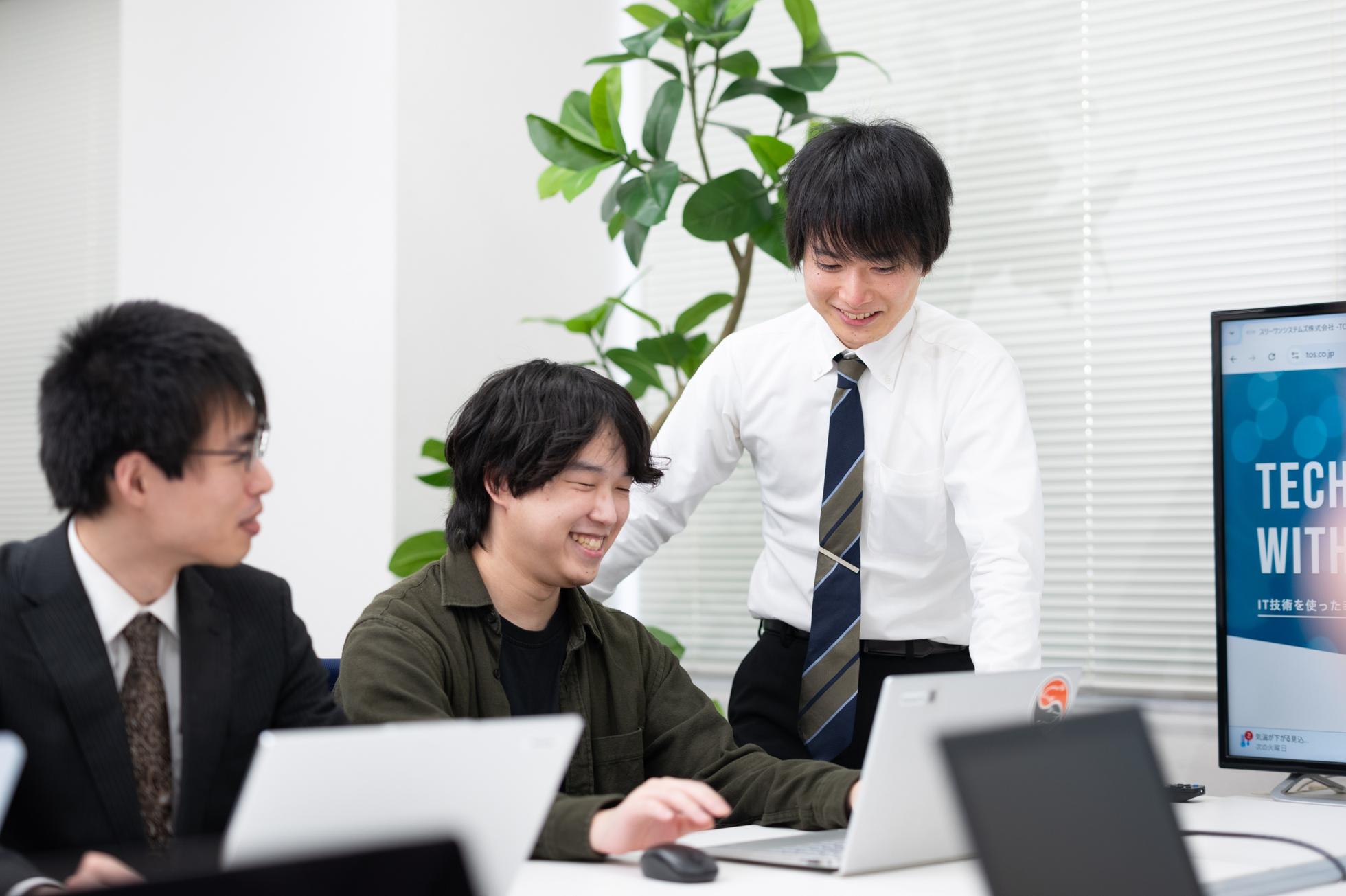 ▍「よく働き、よく遊ぶ」時間内で成果を出し、休むときは休む  ̄ ̄ ̄ ̄ ̄ ̄ ̄ ̄ ̄ ̄ ̄ ̄ ̄ ̄ ̄ ̄ ̄ この考えは社員全員が意識しています。 これは、2022年に新しく代表に就任した岸の『エンジニアがもっと自由に活躍できる会社へ』という想いによるものです。 ただ、「自由に活躍」は、人によって認識が異なるものです。 ・裁量権・発言権がありチャレンジを推奨する環境で働けること ・仕事とプライベートを両立すること ・スキルアップやキャリアップができる環境のこと など あなたが考える「自由に活躍」があればぜひお聞かせください。 活躍できる環境を整えられるよう、全力でサポートします! ▍実際に行っている取り組みと実績  ̄ ̄ ̄ ̄ ̄ ̄ ̄ ̄ ̄ ̄ ̄ ̄ ̄ ̄ ̄ ̄ ̄ ・ライフワークバランス  ー 平均残業時間は、同業界に比べて低いです! ・スキルアップ  ー 定期的に社内勉強会を実施しています。  ー 資格取得支援制度:IT系指定資格取得の際の書籍代や受験料を補助 ・スリーワンクラブ  ー社員同士の交流の場として、自由参加型イベントをさまざま開催しています。   ・新入社員歓迎会   ・ビアガーデン   ・BBQ   ・社員旅行    など 落ち着いている人やのんびり屋さん、ちょっとシャイで前に出たがらない人もいる一方で、 フレンドリーな人や面倒見が良い人、飲み会好きな人など、いろんな考えを持った社員が在籍しています。 多様性のある社員たちに共通しているのは、 “Technically minded with a heart.”のポリシーです。 「人間力」「知性」「技術力」を兼ね備えた、社会に貢献できる社員を目指し、 失敗を恐れずにチャレンジし続ける。 そんなメンバーが集まっているのがスリーワンシステムズです!