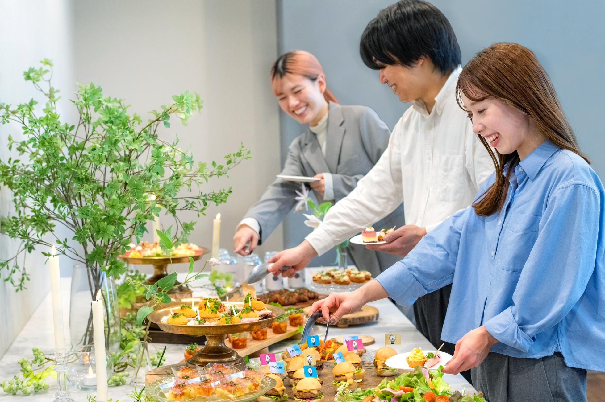 【ケータリング・デリバリー事業】社内外の交流機会など多様な法人ニーズに合わせてカスタマイズできるパーティフードを展開。イベントを彩る豊かなパーティーフードはボンディッシュ自慢のシェフが腕をふるっています。サービススタッフがつくものからデリバリータイプまで様々なシチュエーションにお応えします。