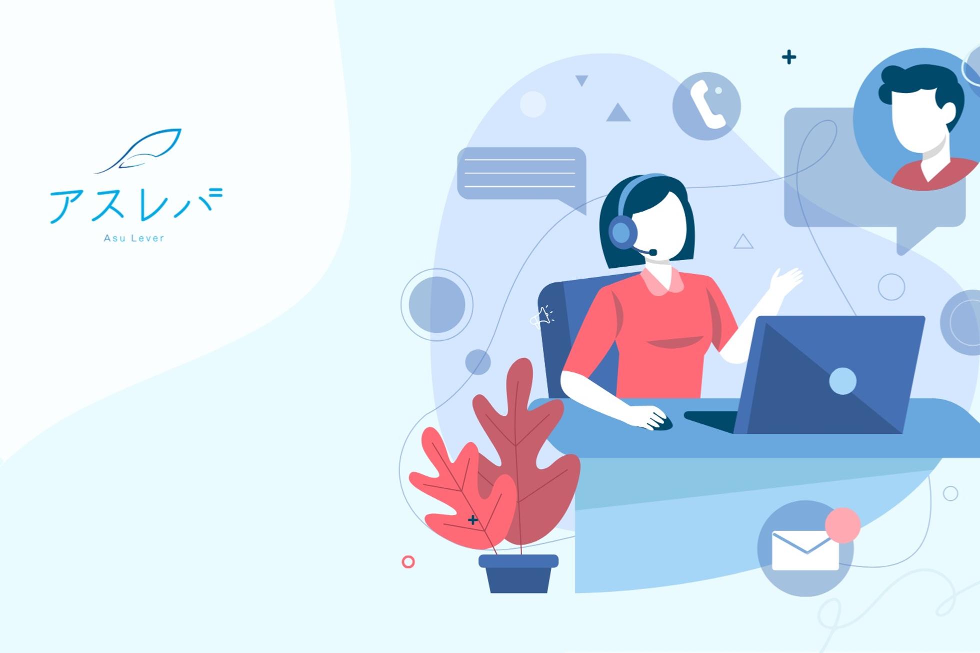 多くの企業が“素晴らしいサービスや技術”を持ちながら、営業体制・ノウハウ・リソースの壁によって機会を逃してしまっています。 そんな企業のポテンシャルを引き出し、成長や売上の物語を共に描くことで、「出会いを価値へと変える」存在でありたいと考えています。 また、私たちは「働く場所に縛られず、価値を発揮できる社会」をつくりたいと考えています。 テクノロジーが進化した今、場所に依存せず、優秀な人材がどこにいても活躍できる時代です。 アスレバは全国の地方在住者が地域格差のない働き方を実現しています。 さらに、完全フルリモート体制による業務効率化と生産性の最大化を徹底。 クライアントへの価値提供とメンバーへの還元を同時に高めています。 こうして「企業」「働く人」「社会」すべてが豊かになる循環を生み出すことが、私たちの目指す社会貢献のかたちです。 営業支援を通じて、企業の成長を支えながら、働く人の未来も広げていく。 それが、アスレバが存在する理由です。