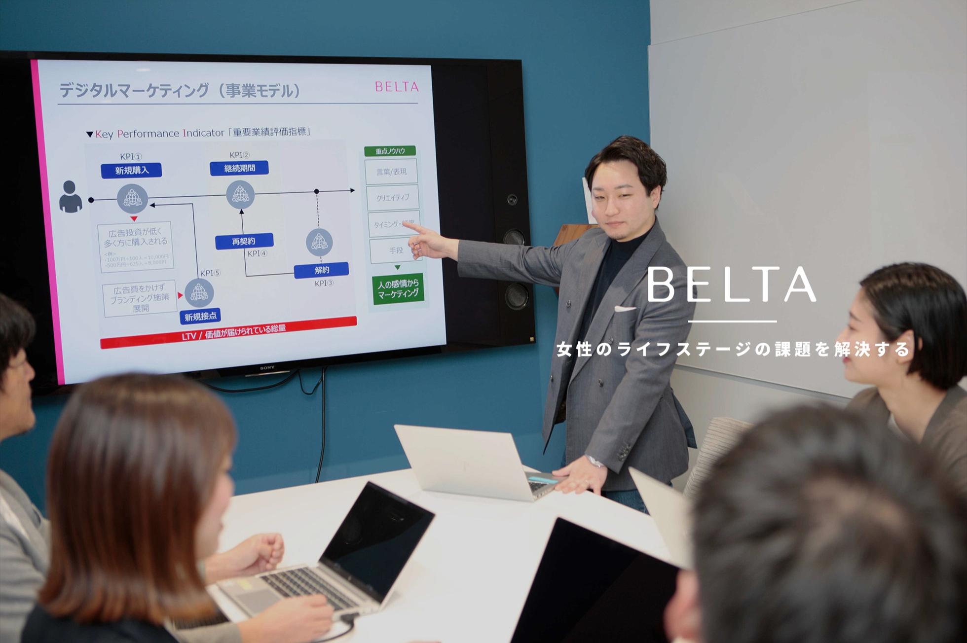 これまで営業・人事・マーケティングと横断的に業務を経験してきました。 現在はライフステージブランド「BELTA(株式会社ベルタ)」の取締役として、 “世界40億人の女性が、私・周り・世の中を好きになれる”社会づくりに挑んでいます。中でも、ゼロからの部署やサービスの立ち上げや、動きづらい組織を整えていくフェーズにこそやりがいを感じてきました。 目指す方向に向かって、組織・チームのエンジンがかかるように。 課題を見立て、仕組みをつくり、挑戦のきっかけをつくる “最初に火をつける”のが、私の得意分野です。