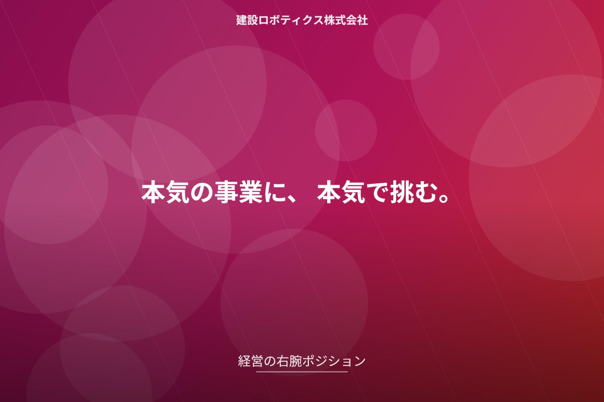建設業を、もう一度『憧れの業界』へ。現場の知見とテクノロジーで業界をアップデートします。 建設現場が抱える深刻な人手不足や高齢化に強い危機感を抱き、建設ロボティクス株式会社を立ち上げました。私たちが今求めているのは、長年現場で汗をかいてきたあなたの「圧倒的な経験値」です。現場の暗黙知と最先端のロボティクスを掛け合わせ、これまでのキャリアの集大成として、一緒に業界の常識を覆しませんか?