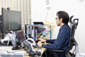 工学院大学大学院工学研究科を首席で卒業。大学院ではVRとロボティクスを組み合わせた「テレイグジスタンス」技術を研究。31歳までloT企業にエンジニアとして勤務、2023年にシンフォニア入社。機械設計、 ソフト開発の両面で高い知識と技術を持つ。「クレーンVR」のラジコン装置や「UNAGI」のハードウェア製作およびSDKなどのソフトウェア開発を担当。