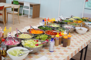 種類豊富なサラダバー!手作りドレッシングも数種類用意しているので社員からも大好評!