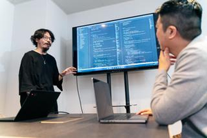 開発作業の様子。互いに意見を出し合って、より良いものを作り上げようと邁進しています。